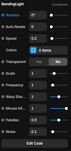 Bending Lights is a customizable THREE.js shader background that creates smooth, animated light waves.