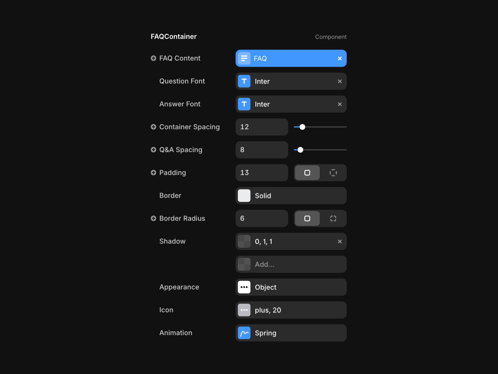 This component automatically converts formatted field into interactive Q&A pairs, with smooth animations and customizable styling by identifying heading paragraph pairs. Ideal for product/support pages with varying numbers of FAQ items.