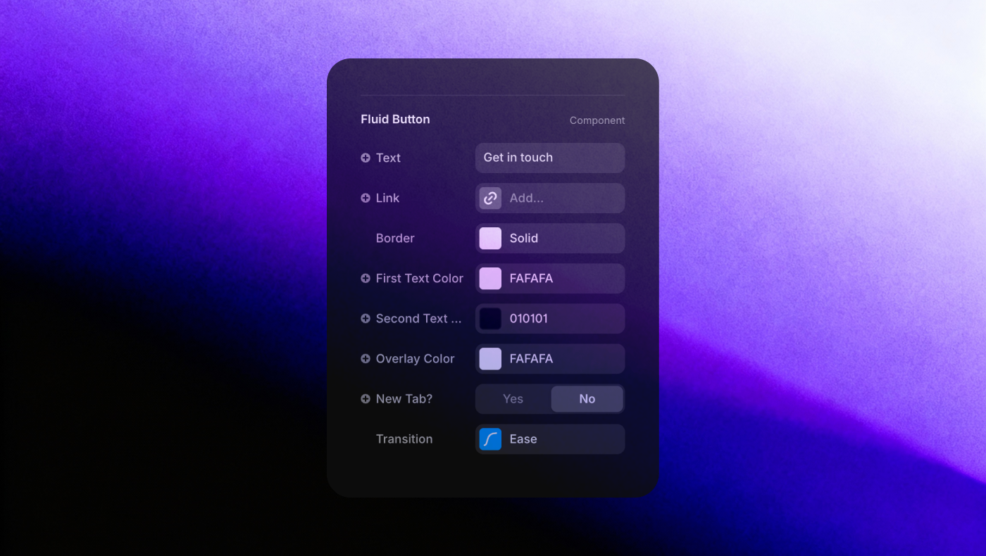 The Fluid Button adds a polished, interactive feel to your Framer projects. When hovered, it gently pulses to draw attention and smoothly slides its text upward, creating a clean motion transition. The animation feels natural and balanced — ideal for modern landing pages, portfolios, or product sites.