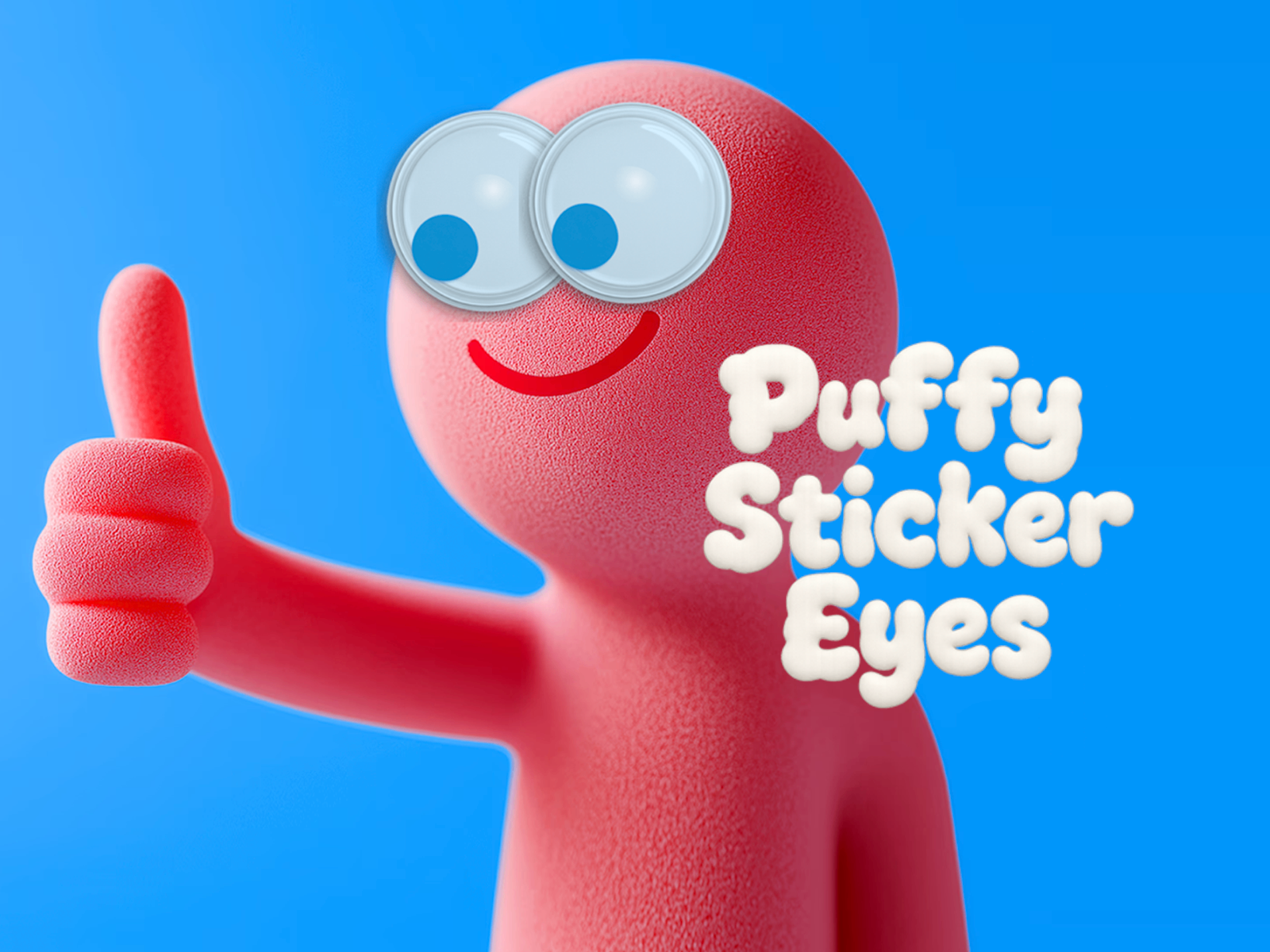 Interactive puffy sticker eye follows cursor. Customize size and colors of individual eye components. Perfect for directing attention to CTAs and key elements.