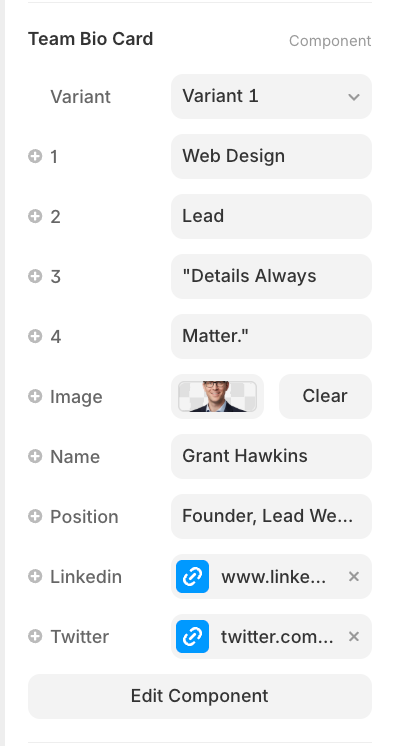The Team BIO Card includes full Framer property controls so you can style it to match any brand or layout.